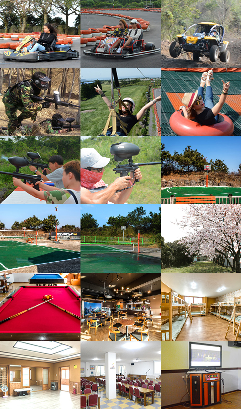 - 레이싱카트, 산악버기카, 짚라인(레펠), 서바이벌,