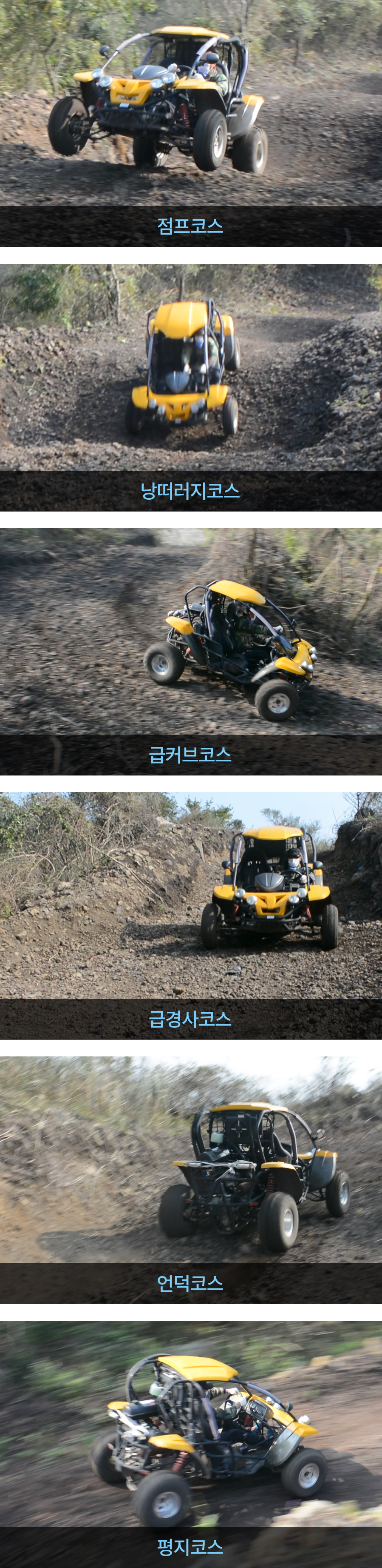 [점프코스,낭떠러지코스,급커브코스,급경사코스, 언덕코스,평지코스]